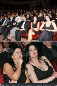 وجلسا كلا من النجمتين جومانا مراد وغادة عبد الرازق بجانب بعضـ..ـيهما لمشاهدة الفيلم مع باقي فريق العمل والمخرج خالد يوسف ، وعدد من النجوم الذين حرصوا على حضور المهرجان.